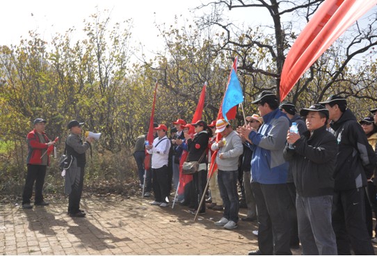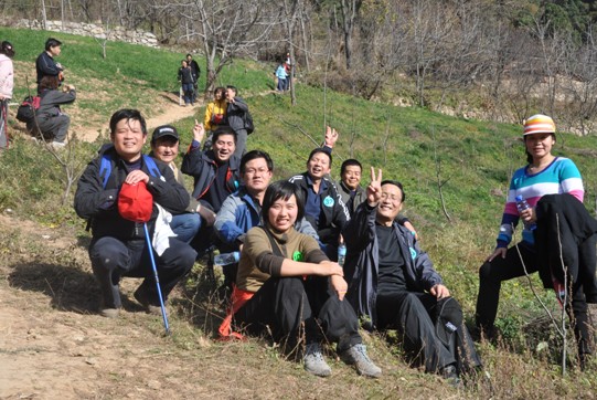 中午11:30分各队队员统一乘车出发,12:30分顺利抵达西安南郊子午峪小五台山下。在小五台山下竖旗扬威仪式隆重举行。仪式由裁判长齐捧虎教授主持,永利集团304am院长白永秀教授致辞。最后由裁判组宣布比赛规则及注意事项。在裁判长的一声号令下各队队员整装出发向小五台山进军。初冬的小五台幽静而又美丽,各队队员登山途中互相鼓励,互相帮助,崎岖的山路,陡峭的山崖不时传出大家欢乐的歌声和爽朗的笑声。经过三个小时的坚持不懈,55名队员成功完成了“小五台”穿越,当最后一名队员安全抵达终点时,所有队员都为她送上了热烈的掌声。